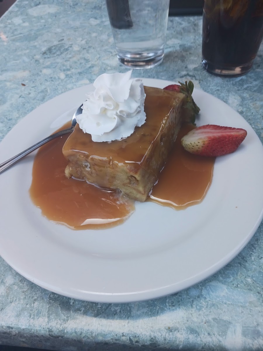 I have seen this restaurant for years, but I've never tried it until now. Why? This place was delicious! Pictured is a White sangria and the bread pudding. Divine. We ordered the caprese for an appetizer (nut free pesto!) main dishes, the chicken piccata and braised short rib. Service was. Great, the vibes were there. I'd love to go back in warmer weather and sit on the patio!