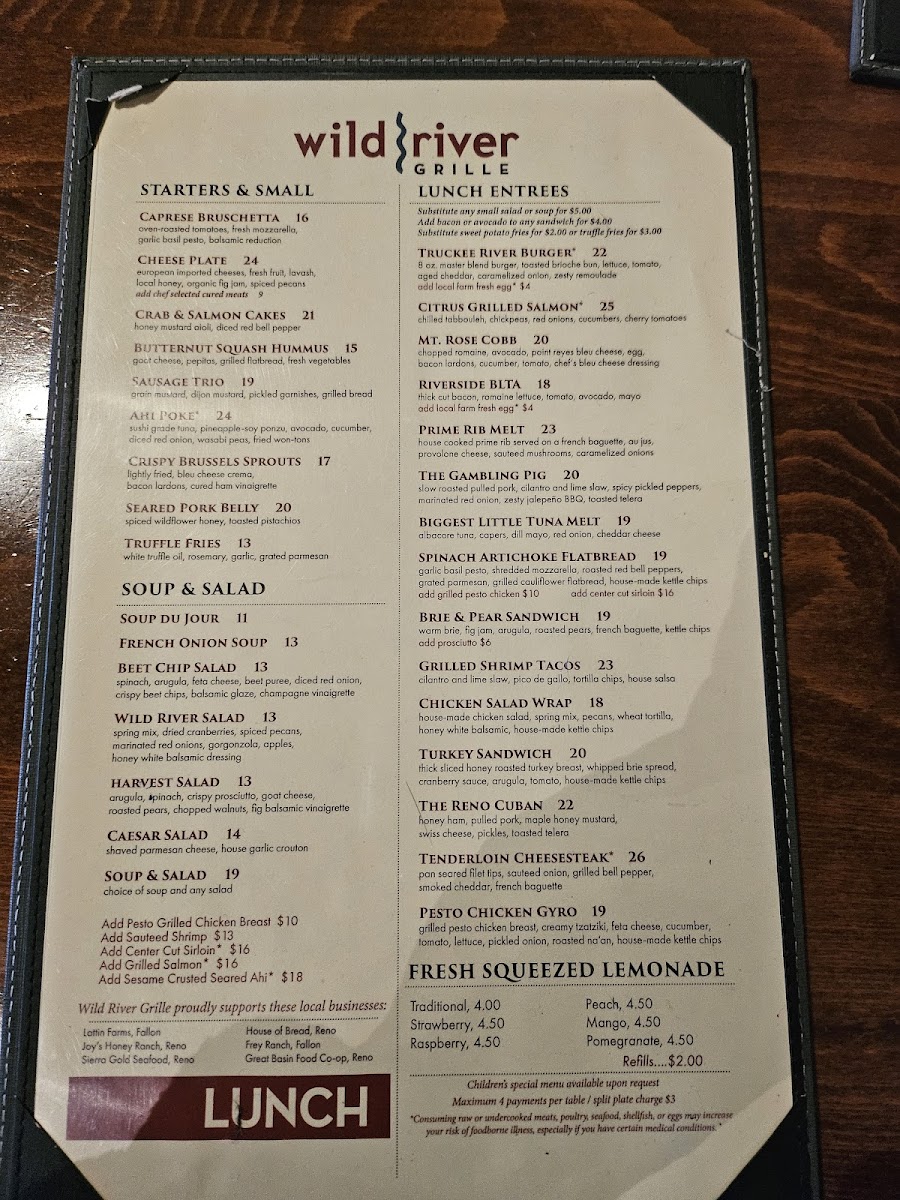 The menu at Wild River Grille offers a thoughtful blend of American and Italian-inspired dishes, crafted to suit a variety of occasions from relaxed lunches to elegant dinners. You’ll find comforting classics like French Onion Soup and House Meatloaf alongside fresh seafood options such as Crab & Salmon Cakes and Tuna Tartare, creating a balanced selection that feels both familiar and a little adventurous.